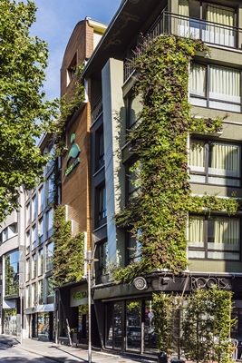 De buitengevel van het Green Hotel in Genk is voorzien van een verticale tuin, die door het formaat meteen in het oog springt en het hotel een prachtig groen aangezicht geeft. Met een oppervlakte van ruim 79 m2 bedekt de SemperGreenwall een groot deel van de gevel, waarmee de naam van het hotel eer aan wordt gedaan. In opdracht van Groenbedrijf Van Vlierden heeft Sempergreen de groene gevel geleverd en geïnstalleerd.