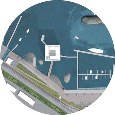 Wij zien “de paal” als metafoor van het WEC. Door de positionering van het WEC wordt het gebouw zelf een experience als onderdeel van de Waddenzee. Het zichtbare wordt nu ook waarneembaar. Vandaar dat wij naast de drie werelden uit de structuurvisie: Kadewereld, Havenwereld en Kustwereld nog een vierde introduceren: De Waddenwereld.