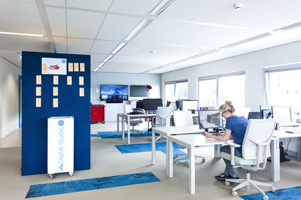 Het is voor alle gebruikers nieuw dat de teams die op deze manier werken ook gezamenlijk gehuisvest zijn. Met de werkwijze en creativiteit van de teams als uitgangspunt hebben wij met en voor hen de 'Digital Studio' gerealiseerd: een werkruimte die volledig is afgestemd op scrum en agile werken. De ruimte wordt gezien als pilot en heeft een tijdelijk karakter, zodat onderzocht kan worden hoe 'the winning way of working' van KLM ook op digitaal gebied gerealiseerd kan worden.