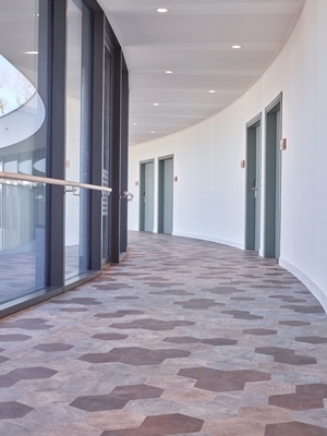 Nadat POLO architects het Vlaams hoofdkwartier van het Rode Kruis in Mechelen mocht ontwerpen, heeft het nu voor dezelfde bouwheer ook de plannen uitgetekend voor een zorghotel voor personen met een beperking in Zuienkerke. Een merkwaardig tweelagig rond gebouw waar introvert en extravert hand in hand gaan. De rustgevende Moduleo Impress-serie en dynamische Moduleo Moods-reeks passen perfect in dit plaatje.