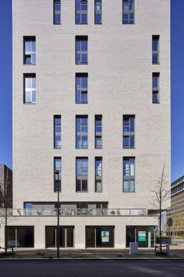 Space-S is gerealiseerd binnen een sociaal woningbouwbudget. Bogers: “Er was wat duwen en trekken voor nodig, maar mede dankzij een betrokken rol van aannemer Stam + De Koning Bouw en de omvang van het project, lukte het om alles binnen budget te krijgen. Bij de gevels speelde de vraag: wil je elders in het plan kwaliteiten realiseren en daarom een steen gebruiken die over tien jaar niet meer zo fraai is? Ook daarom kozen we voor Hagemeister: de kracht van het project zit mede in de kwaliteit van de materialen.”