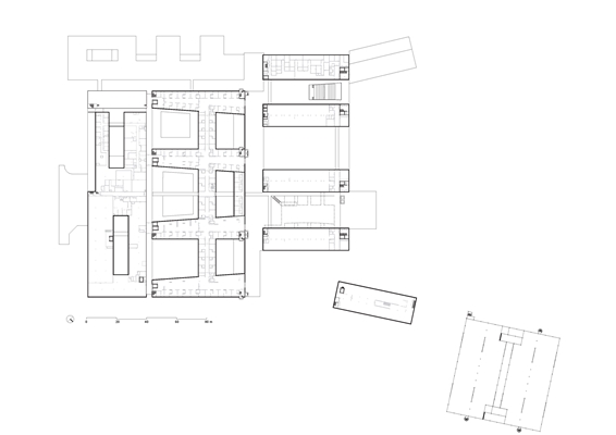 Tussen de bouwmassa’s zijn daarom open ruimten gecreëerd, waardoor het landschap tot diep het gebouw zichtbaar is. Ook daglicht dringt zo diep het gebouw binnen. Ook hebben we gekeken naar de logistiek. De Hotfloors zijn aan het zicht van patiënten en bezoekers onttrokken en in een geheel eigen bouwmassa ondergebracht. Op twee niveaus kunnen medewerkers in de verschillende delen van het ziekenhuis komen. Op het niveau van de parkeergarage ligt de logistieke ring, waarbij het logistiek centrum via de goederenliften met de Verpleegafdelingen en Poliklinieken wordt verbonden. Zonder dat bezoeker of patiënt er iets van merkt, kan het gebouw 24 uur per dag worden bevoorraad. Goederen worden niet over de afdelingen verplaatst, omdat de goederenliften aan de achterkant van de afdelingen zijn gelegen. Op de tweede verdieping is er voor de medewerkers een aparte verbindingszone dwars op het gebouw gemaakt. Zo worden patiënten en bezoekers niet geconfronteerd met de onrust die gepaard gaat met de ziekenhuismachine. Patiëntenvervoer naar de operatieafdeling gaat over deze route.