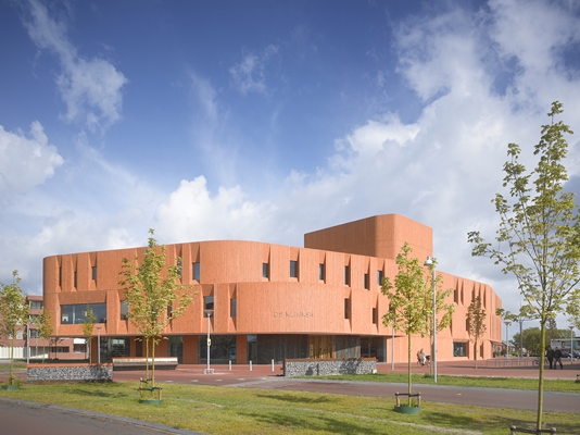 Het cultuurhuis is verankerd in Winschoten doordat de gelede bouwmassa in lijn is met de morfologie van de bestaande omliggende bebouwing. Het afgeronde en alzijdige gebouw heeft een verbindende werking tussen de fijnkorrelige bebouwing van het historische stadscentrum en de grootschalige naoorlogse vernieuwingen en uitbreidingen. Door de plastiek van de bouwmassa wordt de locatie volledig benut wat de prominentie van het cultuurcentrum versterkt. De licht geknikte gevels van het volume spelen met de wetten van het perspectief. Afstanden worden op deze manier visueel verkort. Het aangrenzende centrum wordt gekenmerkt door tweelaags gemetselde huisjes in Groningse klei. Deze fijne schaal is in het Cultuurhuis terug te vinden in de horizontale verdiepingshoge baksteenbanden die de ene keer samenkomen en dan weer wijken. De horizontale geledingen, afrondingen en overstekken herinneren aan het Gronings expressionisme van de jaren twintig. Kenmerkend is de rijke detaillering van het metselwerk. Verschillende bakstenen zijn speciaal voor het Cultuurhuis ontwikkeld in traditioneel oranje Groningse klei. Ook de technische zones in de gebouwplint weerspiegelen de relatie met de omgeving. In de ruwe bruinoranje geveldelen van geperforeerd CorTen staal zijn contouren van het Groningse landschap te zien. De verticaal gemetselde bakstenen en de diepe schuine neggen geven het gebouw een krachtige en stoere uitstraling.