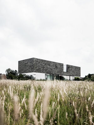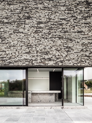Een bezoek aan de showroom van De Saeghers Steenfabrieken in Antwerpen bracht de Santorini BU van Hagemeister onder de aandacht van opdrachtgever en architect. Pascal François: "De Santorini BU is een heel genuanceerde baksteen, met een kleurenspectrum dat loopt van antraciet tot wit. De steen is licht gestructureerd en heeft een fraai formaat: plat en lang, maar geen extreem langformaat."