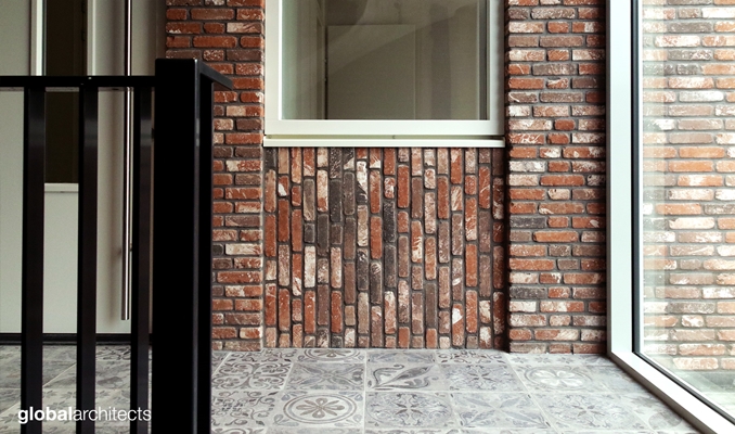 Het herenhuis komt ook terug in de architectuur, welke op een eigentijdse manier vormgegeven is. Er zijn twee type gevelindelingen; met 9- of 6 kozijnen per herenhuis. Door de extra hoge verdiepingshoogte zijn er kozijnen toegepast van 2,6 m hoog. De kozijnen zijn in wit en in antraciet toegepast met een Hollands verdiept profiel met rechte houtlook verbindingen. De extra hoogte in combinatie met het verdiepte profiel zorgt voor een elegante uitstraling van de kozijnen.