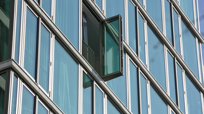 De lofts en hotelkamers zijn voorzien van vouwpuien en inwendige Franse balkons, zodat bewoners en hotelgasten een groot deel van de gevel kunnen openen. Ook in de fitnessruimte en in het restaurant zijn Franse balkons met vouwpuien opgenomen. De rooftop bar kan aan drie zijden de gevels bijna geheel openen met meervoudige vouwpuien, zodat de binnenruimte in open verbinding staat met het dakterras. “Op zomerse dagen zorgen vele openstaande vouwpuien voor een dynamisch gevelbeeld”, verzekert Diederen.
