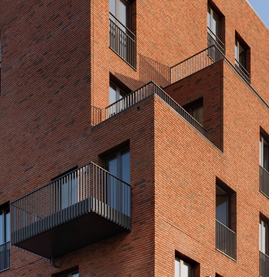 Op een relatief klein kavel zijn veertien starterswoningen ingepast. Gekozen is om een sculpturaal volume te maken in baksteen dat refereert aan de baksteenarchitectuur van de Grensstraat. Door de situering op de hoek van de straat heeft het gebouw een alzijdige kwaliteit en is volgens de supervisor het ‘pareltje’ van de nieuwe ontwikkelingen aan de Wibautstraat. Iedere woning is uniek en zo ontworpen dat het optimaal geniet van oriëntatie en uitzicht. De bovenste lagen zijn hoger dan de omliggende bebouwing en hebben zicht op de Amstel.