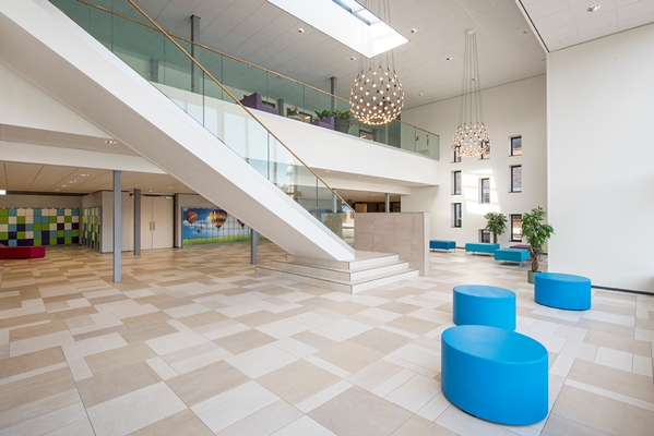 Om meer ruimte te creëren werd het entreegebied geoptimaliseerd en vergroot. Dankzij die uitbreiding heeft iedere afdeling nu een eigen studieplein en is de pauzeruimte een stuk groter. Ook zijn er meer studieplekken en is, mede door het verplaatsen van een aantal interne ruimtes, het interne verkeer van de leerlingen aanzienlijk verbeterd. De buitenzijde van het gebouw kreeg een geheel nieuwe uitstraling door het vernieuwen van de gevel. De prachtige bakstenen zijn mooi verwerkt en passen heel goed bij de kleur van de kozijnen. Het is bijzonder goed gelukt om de verschillende stijlen van de oude gebouwen en de nieuwbouw samen te smeden tot een samenhangend geheel.