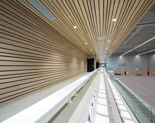Bij dit project is het het Lambri Lineaire systeem zowel als plafond als wand toegepast