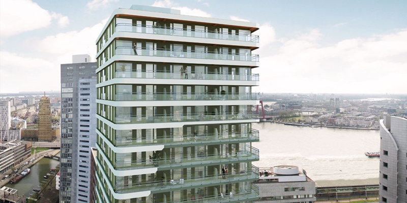 In het opkomende Wijnhavengebied in Rotterdam wordt momenteel hard gewerkt aan een woontoren van maar liefst 107 meter hoog. up:town wordt een van de gezichtsbepalende gebouwen van het gebied. Een uniek gebouw vanwege haar locatie, haar hoogte en de markante groene kleur.