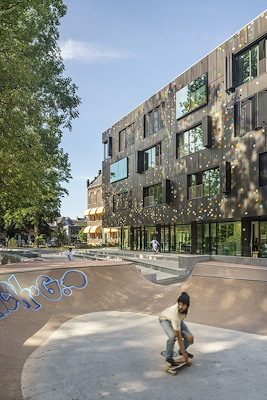 geheel gerenoveerde schoolgebouw in het Oosterpark