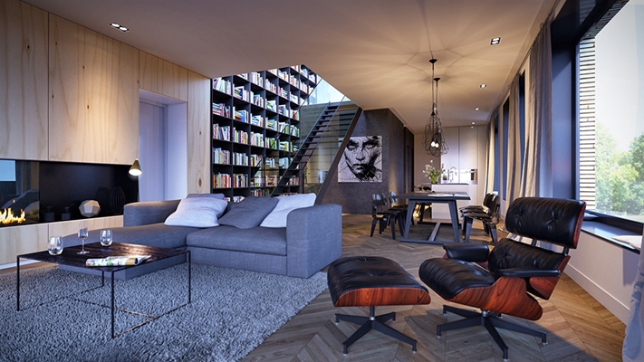 RIV// is een pand met statuur, met hoge entrees en grote portieken. Tegelijkertijd is het toegankelijk: de detaillering en de verspringende gevel geven het forse bouwvolume weer een schaal die aansluit bij de menselijke maat. De verspringende blokken in de gevel zorgen voor licht en zicht in de woningen, creëren royale buitenruimtes en geven privacy.