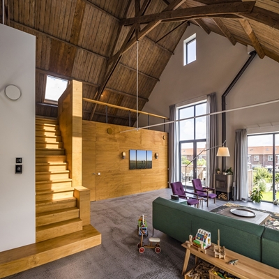 Coen Kampstra van FARO architecten is zowel initiatiefnemer, opdrachtgever, architect én inmiddels bewoner van het meergeneratiehuis. Hoe kwam het idee tot stand om in een kerk te wonen? Kampstra: “We wilden ooit nog eens een woning zoeken waar we samen met mijn schoonouders konden wonen. Vanuit het idee dat zij ons nu met de kinderen kunnen helpen en wij hen later kunnen ondersteunen. Op een gegeven moment kwamen we dit kerkje tegen en dat vonden we eigenlijk wel erg geschikt.” Doordat de kerk geen monumentale status had, had Kampstra feitelijk carte blanche om de woning naar eigen inzicht te ontwerpen. Dat was prettig, want er waren de nodige eisen die hij had gesteld. “We wilden up to date zijn qua isolatie, veel lichtinval krijgen en ook de onderlinge geluidsisolatie tussen de ruimten goed op orde hebben.”