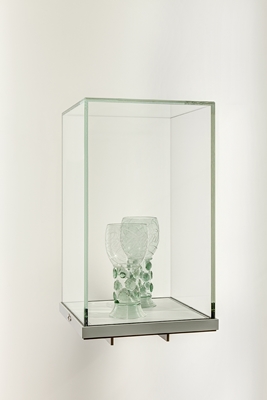 Een ingenieus vitrinesysteem biedt verschillende mogelijkheden om de erfgoedcollectie te exposeren en te koppelen aan interessante verhalen. Middenin de ruimte staan grote ‘bronvitrines’ die allerlei objecten - van kleine artefacten tot middelgrote maquettes - ter bezichtiging stellen. Veel aandacht is besteed aan de constructie: grote glazen oppervlakken en slanke profielen zorgen voor een onbelemmerd zicht op de tentoongestelde objecten. Ze worden afgewisseld met kleinere ‘opzetvitrines’ waarin één bijzonder object wordt uitgelicht. Erboven hangen AV-schermen die de geschiedenis verbinden met belangrijke personen uit Arnhem en omgeving.