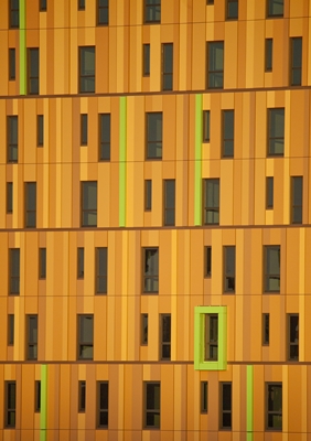panels used for the façade cladding comprise seven shades and gloss levels ranging from 10% to 50%. Tamara Roy, also an architect at ADD Inc.says, “We began with darker colours at base level, lightening in tone as we moved upwards so that the building seems to disappear in the haze. The colour palette ranges from gold to rust and is reminiscent of tree bark. The green are as symbolize leaves. Finally, the base is bent - like a tree trunk, whose crown then extends outwards. The unevenness of the bark is recreated by using tray panels in different depths.”
