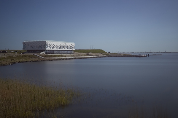 De noordgevel heeft een zeer gesloten karakter en maakt alleen ruimte om de bezoeker naar binnen te laten gaan. Eenmaal binnen wordt je overspoelt door licht. Het open karakter van de zuidgevel toont het wijde landschap en de oneindigheid van het water. Het gebouw bevat niet een beleefcentrum maar ís een beleefcentrum.