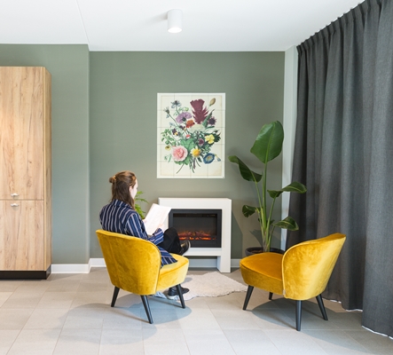 Het interieur is zeer zorgvuldig samen met de bewoners ontstaan waardoor iedereen zijn eigen herkenbare kamer heeft gekregen en zich helemaal thuis voelt. De bewoners zijn enorm trots op hun nieuwe eigen plek waar wij dan weer helemaal blij van worden. Een geslaagd project dus.