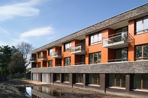 Door het onderscheid tussen het openbare gebied en de semi-openbare binnenhoven wordt de sociale cohesie gestimuleerd. De wisselwerking met de (semi) openbare ruimte prevaleert boven spectaculaire vormgeving. De precaire balans tussen de parkachtige structuur en de groene binnenhoven is cruciaal om het programma van 270 woningen zodanig in te bedden, dat er geen verstedelijkt woonmilieu is ontstaan. De uitwerking van de gevels met een ingetogen materiaalkeuze en detaillering is dienend aan dit concept. Om het verschil tussen de buitenzijde en de binnenhoven te optimaliseren is een genuanceerde baksteenkeuze in één tint gebruikt. Een warme materiaalcompositie voor de gevels van de binnenhoven en de veranda’s kadert een plezierig verblijfsmilieu voor de doelgroep in. Een beschutte wijk midden in de maatschappij, die ouderen herkennen als een plek waar ze graag op een actieve en betrokken manier wonen.