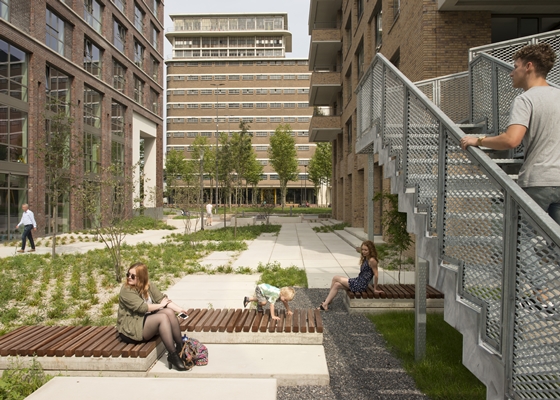 Vanuit de bewoners zijn belangrijke initiatieven tot uitgangspunt verklaard. Bijvoorbeeld de wens om verschillen te mixen en dus geen aparte gebouwen per doelgroep te creëren. Starters wonen naast gepensioneerden, studenten boven gezinnen en ondernemers tegenover jongeren met autisme die begeleid wonen. Door deze mix ontstaan meer diverse sociale contacten. De plek wordt door veel bewoners als hún plan gezien. Bewoners ontmoeten elkaar in bij de gedeelde wasmachines, in de woonkamer met de logiesfunctie, in de gemeenschappelijke daktuinen en bij de centrale ontmoetingsruimte onder het hoogste blok. Het dagelijks beheer wordt vanzelf opgepakt met de beheerder van Woonbedrijf en mensen spreken elkaar makkelijk aan op ongewenst gedrag. Een inpandige parkeeroplossing maakt een levendige plint mogelijk die het plan verbindt met de stad in een mix van wonen, werken en commerciële functies.
