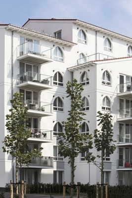 De architectuur van kerken en kloosters is gevormd door een zoektocht naar rust. Religieus erfgoed heeft in die zin als inspiratiebron gediend. In plaats van opvallen, draait het eerder om het realiseren van harmonie, door gebruik te maken van bijvoorbeeld repetitie. Je ziet ritmische gevels die bestaan uit een herkenbaar patroon van boogramen. In het witte beton zijn subtiele details zichtbaar.