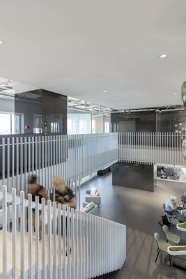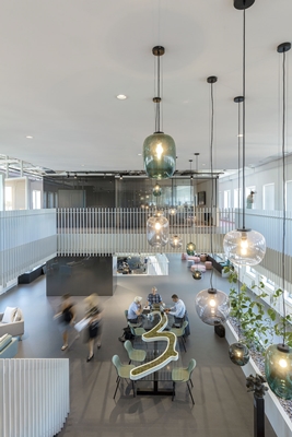 Door het spelen met de positionering van diverse gedeelde functies en individuele plekken is in het gebouw een interessant magnetisch beeld gecreëerd. Niet alle aandacht op één plek maar strategisch programmeren en zorgvuldig positioneren. Dit leidt tot verwachte en onverwachte ontmoetingen. En dít is de katalysator van innovatie.