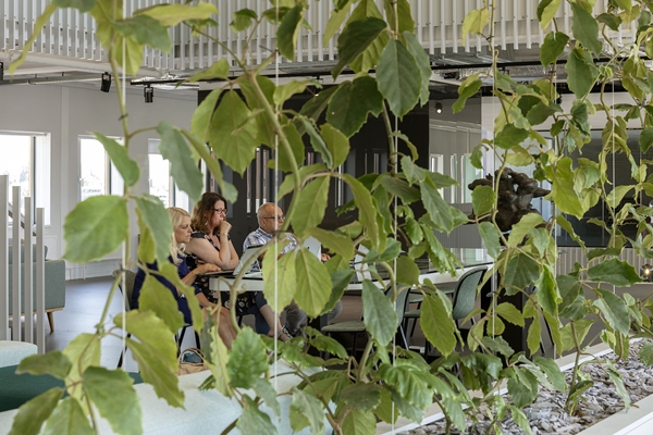Een stadskantoor is van de stad. Werken met lokale partijen werkt daarbij versterkend. Alle gordijnen zijn door een lokale ondernemer geproduceerd en geplaatst. Een lokale kunstenaar heeft een aantal bijzondere (bijzet)tafels ontworpen die een stuk verhaal van de stad vertellen. En zelfs het onderhoud van de beplanting wordt gedaan door inwoners met een afstand tot de arbeidsmarkt. Voor de stad en met de stad.
