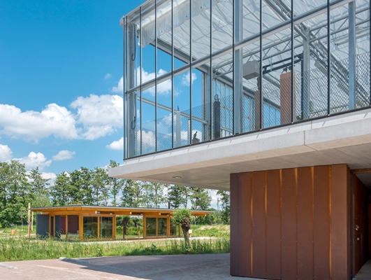 Zicht op het kasgebouw