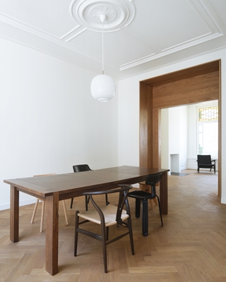 Met een reeks uitgesproken ingrepen hebben wij getracht een fijn familiehuis te maken dat aansluit bij de specifieke behoeften en wensen van haar gebruikers en de essentiële kwaliteiten van het bestaande pand omarmd. Deze dialoog resulteert in een diverse leefomgeving waarbij de verschillende tijdslagen van de woning leesbaar zijn maar de woning niet statisch geconserveerd werd.