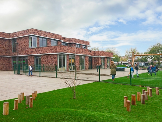 Het onderwijsgebouw voegt zich optimaal naar de omgeving. Aan de straatkant sluit het qua volume en vorm aan bij de woningen en kerk. Ook de gebruikte baksteen past daarbij. Het is een ruim gebouw met een kleinschalige, vriendelijke uitstraling, dat past bij het dorp.
