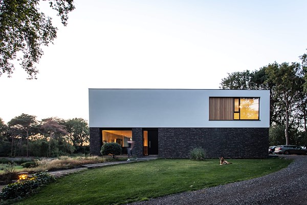 Na de aankoop van een gedateerde jaren 70-woning benaderde onze opdrachtgever ons voor het maken van een ontwerp. Dit ontwerp behelsde de transformatie naar een duurzame en moderne villa die past bij deze tijd. De bestaande woning is in de basis goed en degelijk en door de ruime opzet van de woning is er veel mogelijk. In ons ontwerp hielden we rekening met het behoud van zoveel mogelijk constructieve onderdelen. Het bestaande dak verdwijnt in ons ontwerp en we plaatsen op deze plek een nieuw volume middels een lichte bouwconstructie (door houtskeletbouw). Alle bestaande buitenmuren blijven intact en we isoleren de buitenzijde en werken dit af met steenstrips, stucwerk en hout voor een warm accent. De andere zijde van de woning breiden we aan twee kanten uit. Aan de ene zijde is de master bedroom gepositioneerd zodat je van daaruit direct lekker naar het zwembad kunt gaan. Aan de andere zijde hebben we de eettafel gepositioneerd die aan drie zijden wordt omgeven door een glazen pui. Hierdoor is de beleving van de tuin optimaal. Bovendien is er in deze ruimte volop daglicht. Tussen de twee uitbouwen bevindt zich het overdekt terras. Deze heeft een lamellen dak zodat er voldoende daglicht naar binnen treedt richting de keuken. Tegelijkertijd is het ook heel praktisch om de zon/warmte en eventueel regen op het terras te weren.De architectuur uitstraling van de villa is aan de voorzijde ingetogen en vrij gesloten. Aan de achterzijde is er veel openheid en verbinding met de lommerrijke tuin en omgeving.De woning wordt energieneutraal uitgevoerd. We passen hoogwaardige isolatie toe, triple glass, een warmtepompinstallatie in combinatie met een warmteterugwin (WTW)-installatie en zonnepanelen.