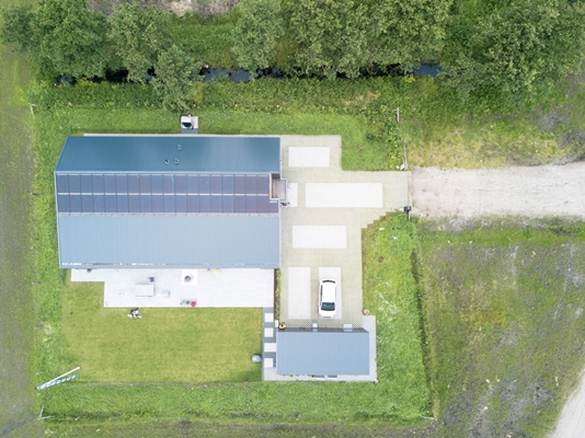 De buitenschil is uitermate goed geïsoleerd en haalt een Rc-waarde ver boven bouwbesluit. En daarnaast is de oriëntatie van de woning zodanig dat het ‘energiedak’ een optimaal rendement haalt uit de zonnepanelen om alle installaties te bedienen.