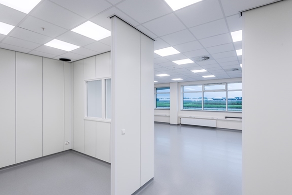 Net als tijdens de voorgaande verbouwing koos de architect ook dit maal voor wanden van Faay. De HW90 om precies te zijn. Een wand met twee panelen met een kern van vlasscheven met daartussen een spouw van 40 mm gevuld met steenwol en afgewerkt met een hardplastic toplaag. Door de hardplastic toplaag zijn de wanden eenvoudig te reinigen. Hygiëne en het waarborgen van kwaliteit zijn bij Bejo namenlijk van groot belang. De wand levert bovendien een positieve bijdrag aan de esthetiek en is zeer snel te monteren.