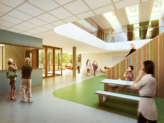 Team 4 Architecten is verantwoordelijk voor het ontwerp van het nieuwe Wellantcollege in Naarden. Dit schoolgebouw wordt natuurlijk, duurzaam en gezond, mooi in lijn met het gegeven onderwijs: vmbo groen.