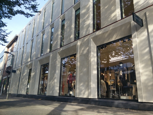 Door te kiezen voor een lichtgewicht natuursteen honingraat gevelelement is er zonder al te veel bouwkundige ingrepen een nieuwe gevel geplaatst met een verdekte hemelwater afvoer.