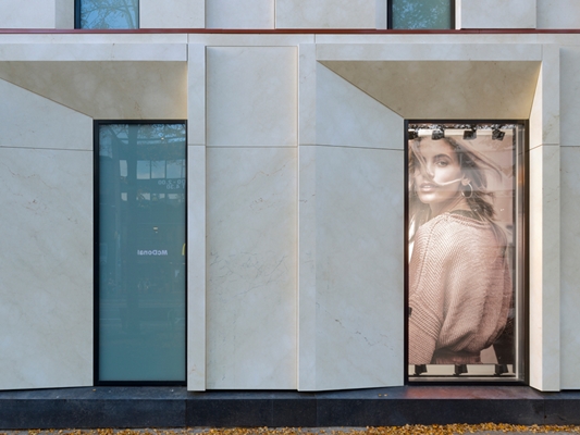 Hierbij is ook een andere indeling is gemaakt voor de raampartijen, de natuursteen honingraat gevel-elementen zijn zodanig ontworpen dat deze in een vloeiende lijn doorlopen in de dagkanten.