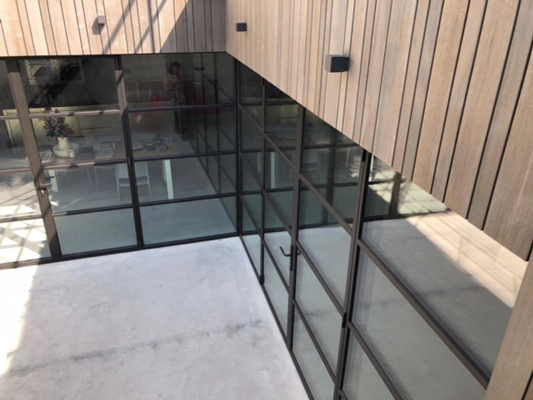 Het oude pand had een zeer beperkte lichtinval, dit is in de nieuwe situatie doorbroken door extra openingen te realiseren. Om aan de wens van een tuin te voldoen is een binnen patio gecreëerd. Door het toevoegen van voldoende openingen en de implementatie van de gewenste binnen patio, en het dusdanig situeren van de onderlinge woonfuncties, is de gewenste lichtinval en het contact met de omwonenden verkregen. Om de interactie tussen binnen en buiten te bevorderen is het lager gelegen dak uitgelijnd met de bovenzijde van de gevel. Door de dakverhoging die hierdoor onstaan is kan men nu tevens gebruik maken van een dakterras. Om ook aan de wens van deze echte kookliefhebbers te voldoen is de keuken voorzien van alle professionele voorzieningen. De materialen die zijn toegepast sluiten zo dicht mogelijk aan bij de karaktereigenschappen van het oorspronkelijke pand en aan alle wooneisen van de eigenaren.