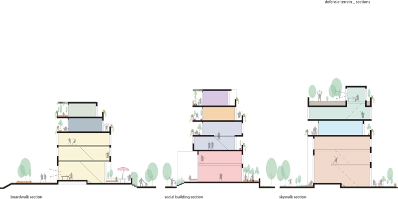 Doorsnede appartementenblokken De Nieuwe Defensie Utrecht