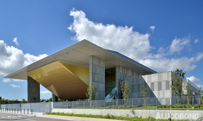 Product: ALUCOBOND® white 101 & spectra Desert Gold