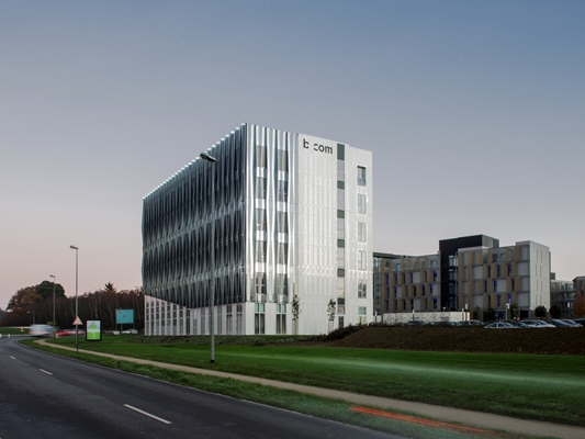 The campus of b<>com in Rennes, France is a materialisation of the brand itself as well