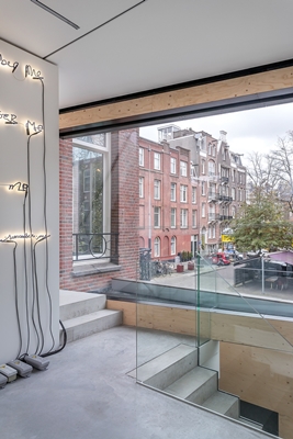 Nabij het Vondelpark, aan de Koninginneweg in Amsterdam heeft architect Barend Koolhaas een moderne kunstruimte gerealiseerd. In samenwerking met de opdrachtgevers ontwierp de architect een gebouw vol onverwachte ruimtes met grote glaspartijen. Licht, ruimte en openheid zijn de sleutelwoorden in het ontwerp voor kunstruimte EENWERK.