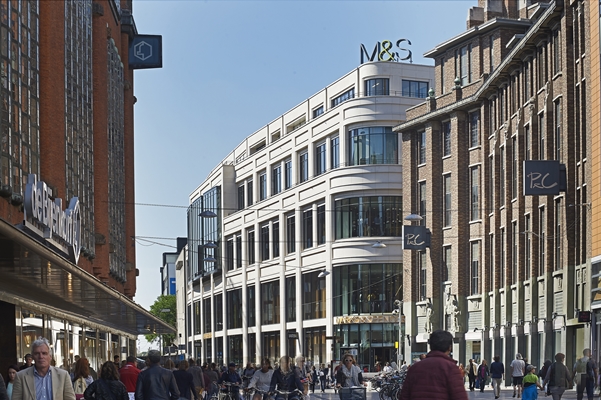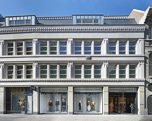 Achter de gevel heeft de daar aanwezige wirwar van gebouwen en functies plaats gemaakt voor een groot en flexibel indeelbaar winkelcomplex van in totaal 15.000 m2. Een geheel bestaat uit drie gebouwen van meerdere verdiepingen met grote vloeroppervlaktes en wisselende plafondhoogtes. Op die manier kunnen toonaangevende kledingwinkels als Zara, Marks & Spencer en Hennes & Mauritz er het beste mee uit de voeten. De bovenste, vijfde laag van het gebouw is gereserveerd voor zes nieuwe appartementen.