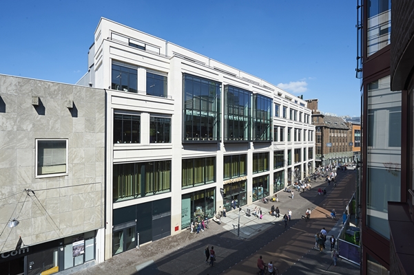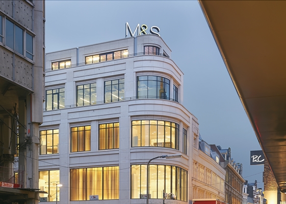 Het gebouw heeft een lengte van zeventig meter en heeft naast de entree op de hoek een tweede entree in het midden. Achter de drie glazen erkers ligt een vide met een restaurant, behorend tot warenhuis Marks & Spencer.