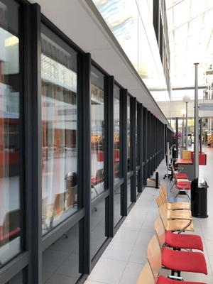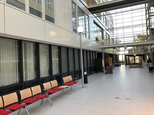 "Tevens zijn in het eerste kwartaal van 2018 de puien op de begane grond in de centrale hal aan de zijde van de bouwdelen B en D aangepast om de brandwerendheid van deze gevel te verhogen. Tijdens de werkzaamheden is meteen van de gelegenheid gebruik gemaakt om de uitstraling van de hal aan te passen. De rode tegeltjes en rode raamstijlen hebben plaatsgemaakt voor antracietgrijze strakke puien. Een heel andere aanblik." - Website Ijsselland Ziekenhuis