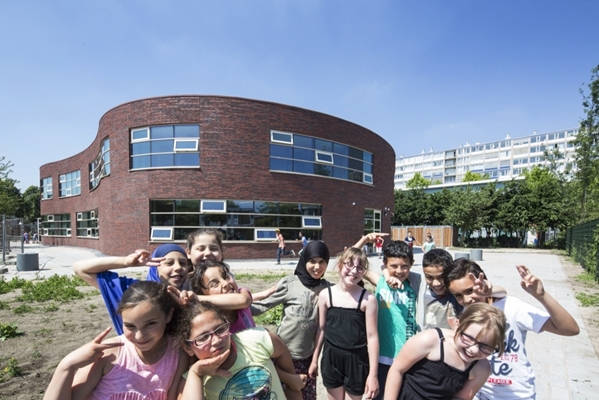 Aan Wezerdreef in Utrecht staat het nagelnieuwe schoolgebouw van OBS De Watertoren. Het ontwerp van architect Ronnie Kuiper (