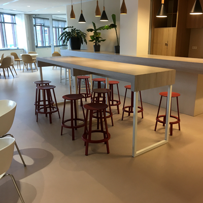 Bij stadsloket West, Bos en Lommerplein, in Amsterdam is er LiquidDesign in de kleur Shell op de vloer aangebracht. Het is een ontwerp van Nicolet Bekker van Maarten Jamin Studio uit Amsterdam en uitgevoerd door Resident Projecten. Shell is een mooie lichte kleur die goed bij de rest van het interieur van het vernieuwde stadsloket past.