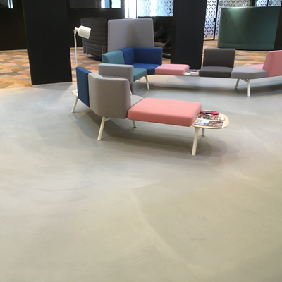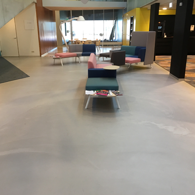heeft hiervoor de producten van Forbo Eurocol gebruikt, waarbij eerst de vloer geprimerd is met de 044 Euro Primer Multi. Vervolgens is er gekozen voor 3% wit pigment toevoeging aan een zak 990 Europlan Direct. Daarna is de vloer gelakt met de “301 BaseSealer”. Na een droogtijd van 2-4 uur is de vloer afgelakt met de twee componenten lak de 311 TopCoat.