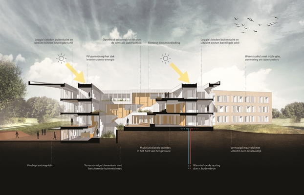 De nieuwe Care Kliniek voor Antes gaat nog dit jaar in uitvoering. Antes, onlangs gefuseerd met Parnassia, is de gespecialiseerde zorgverlener op het gebied van psychiatrie en verslaving in de regio Rotterdam Rijnmond, voorheen de organisaties Bouman GGZ en Delta. Op de locatie aan de Oude Maas in Poortugaal, vindt al 100 jaar psychiatrische zorg plaats (Maasoord). Op dit moment zijn er op het terrein verschillende behandel- en woongebouwen, waaronder veel in tijdelijke constructies. Heel precies ingepast tussen de bestaande waterpartijen en waardevolle bomen zullen de bewoners straks uitzicht hebben over de oude zomerdijk aan de Oude Maas.