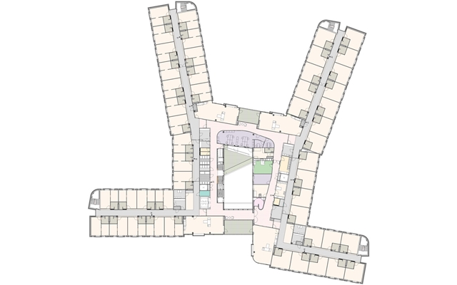 01-10 Architecten heeft de oorspronkelijke visie uitgewerkt in een ontwerp met als kerngedachte het concept van een bijzonder woongebouw voor langdurig verblijf in een campus omgeving. Het Care-gebouw vormt hierbij een volledige vernieuwde en moderne omgeving voor cliënten die op den duur weer zelfstandig in de maatschappij moeten kunnen functioneren. Hiermee vormt de kliniek een nieuwe fase in het creëren van een moderne zorgcampus en een toekomstbestendig “healing environment”.