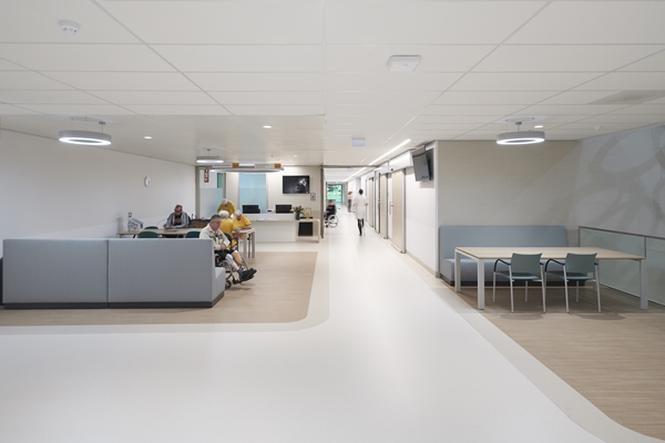 De nieuwbouw is in drie jaar tijd ontworpen, gebouwd en in gebruik genomen en is met recht een gezond gebouw. De verpleegafdelingen zijn open, transparante en motiverende omgevingen die de zelfredzaamheid van de patiënt stimuleren en maximale ondersteuning voor de zorgprofessional bieden. Ruim binnentredend daglicht, natuurlijke materialen, een ingetogen kleurpallet, uitzicht naar buiten, lange rustgevende zichtlijnen en contact met de natuur dragen bewezen bij aan het gezonde gebouw.