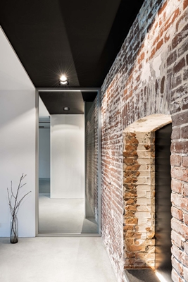 Verlichting die de overgang tussen oude en nieuwe wand contrasteert